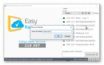 Para mudar a descrição do Terminal, basta acessar o Easy Remote Access com login Administrador/Técnico