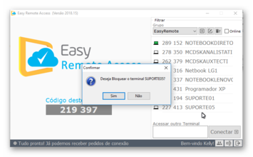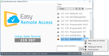Para desbloquear/bloquear um terminal, entre com o login de administrador/técnico do no Easy Remote Access