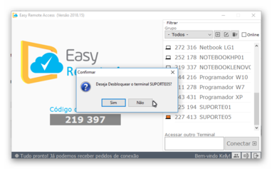 Será solicitada a confirmação do desbloqueio, clique no botão Sim