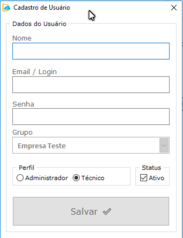 Após clique no botão Incluir novo usuário e preencha os campos: