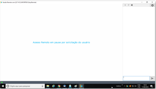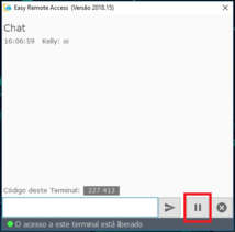 Será exibido o Chat e ao clicar no botão o acesso remoto é pausado