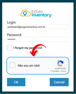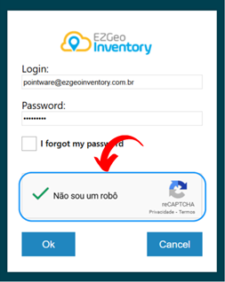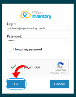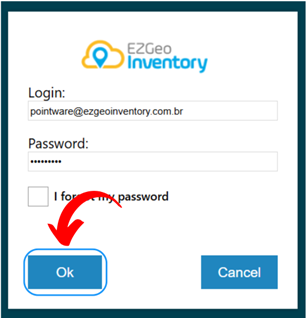 4. After filling in the required fields, click on "OK" to access the EZGeo Inventory portal.